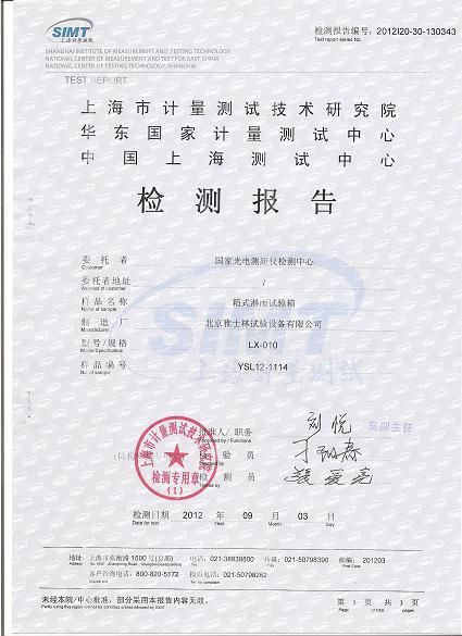 >>淋雨試驗(yàn)箱檢測報告-上海計量院-國家光電中心