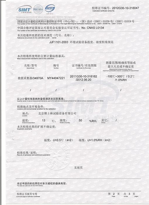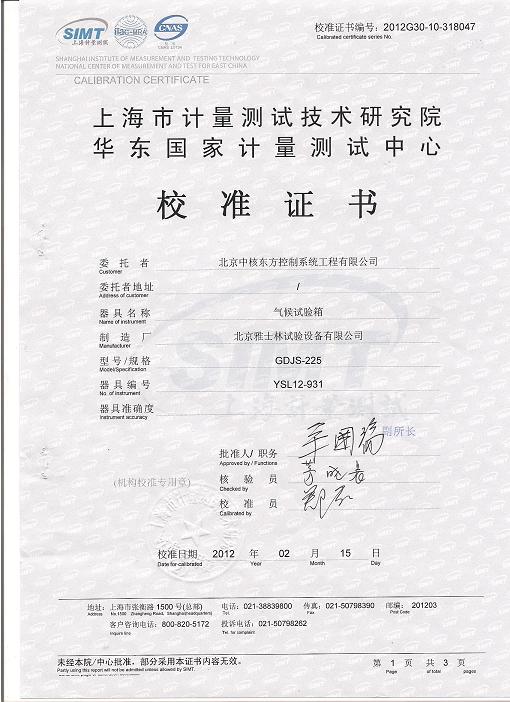 >>氣候試驗(yàn)箱校準(zhǔn)證書(shū)-上海計(jì)量院-中核控制1