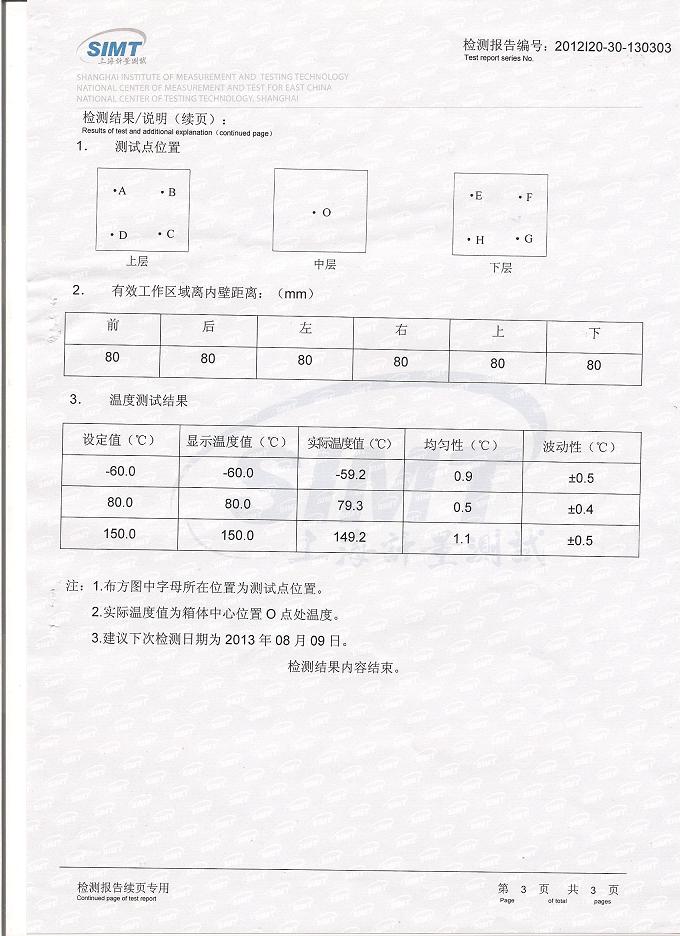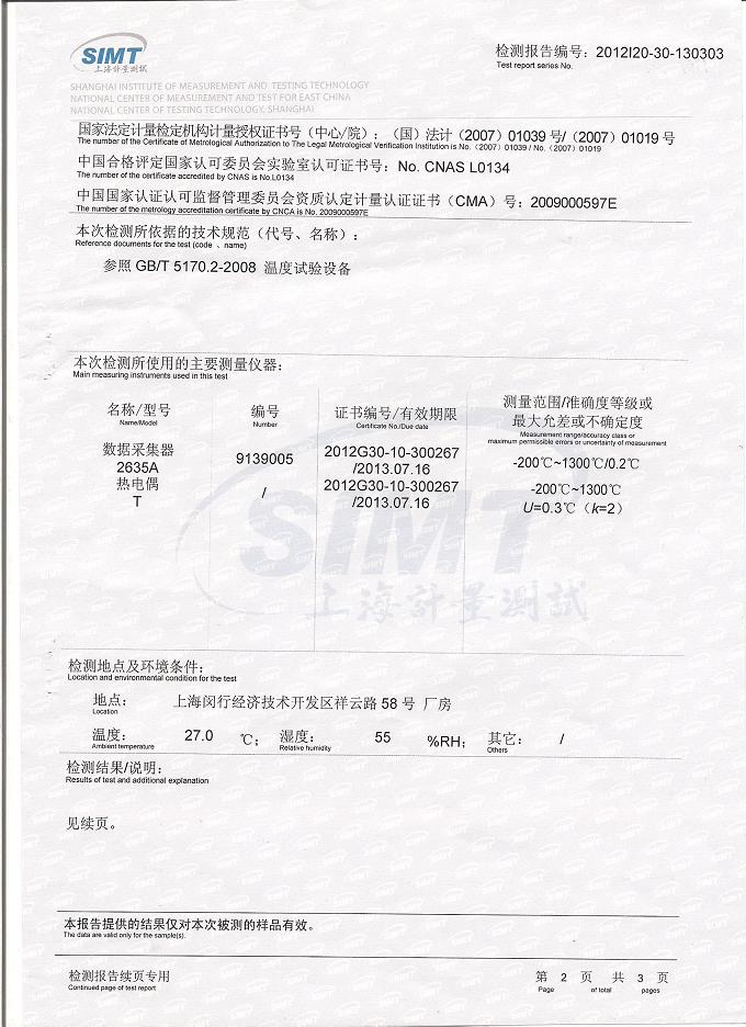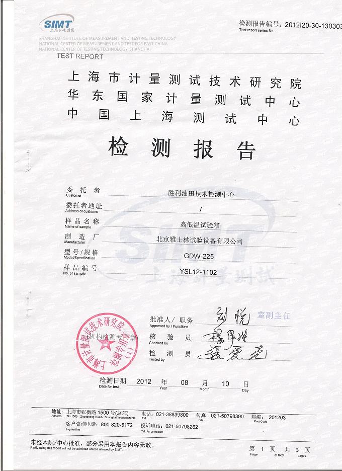 >>高低溫試驗(yàn)箱檢測報告-上海計(jì)量院-勝利油田