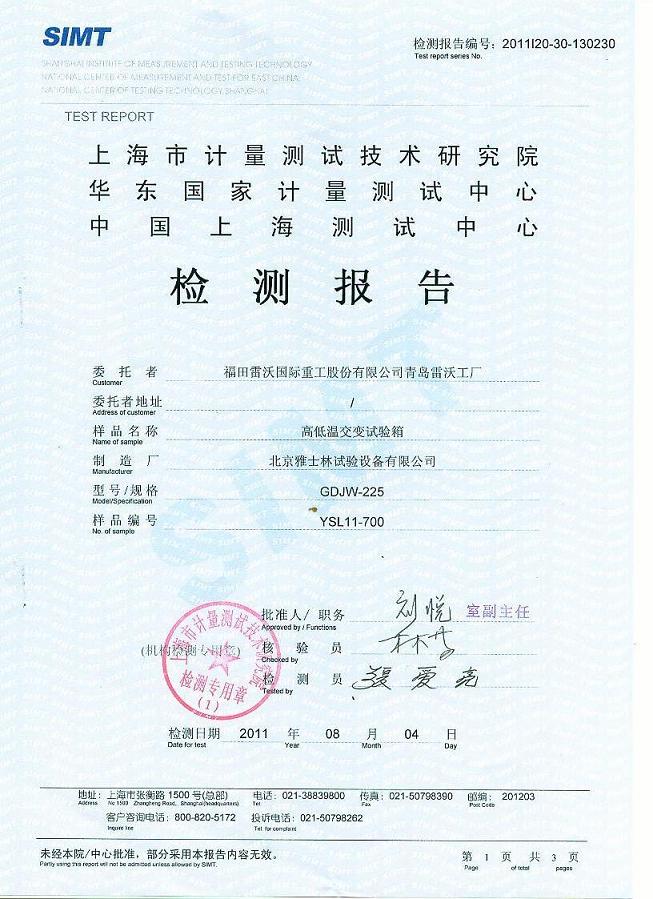>>高低溫交變試驗(yàn)箱檢測報(bào)告-上海計(jì)量院-福田雷沃