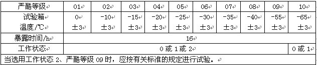 條件試驗(yàn)12方法:溫?zé)幔ㄏ聢D為條件試驗(yàn)方法12溫?zé)岬膰?yán)酷等級表)