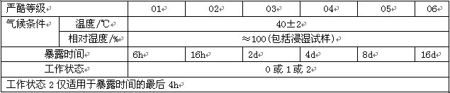 條件試驗(yàn)13方法:凝露(下圖為條件試驗(yàn)方法13凝露的嚴(yán)酷等級表)