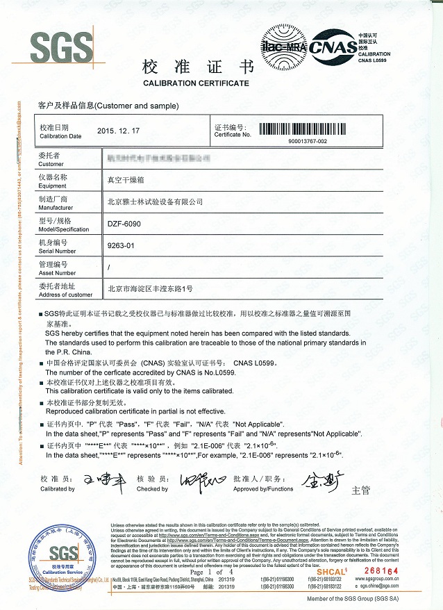 >>真空干燥箱校準(zhǔn)證書模板下載—SGS