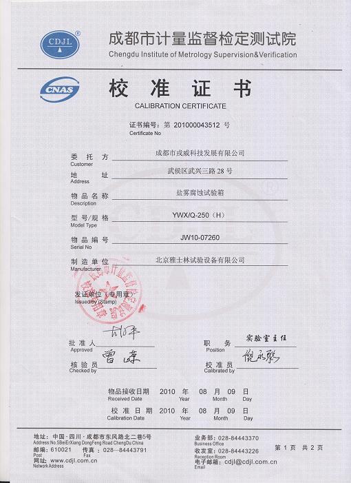 >>鹽霧腐蝕試驗(yàn)箱校準(zhǔn)證書(shū)-成都計(jì)量院-戎威科技